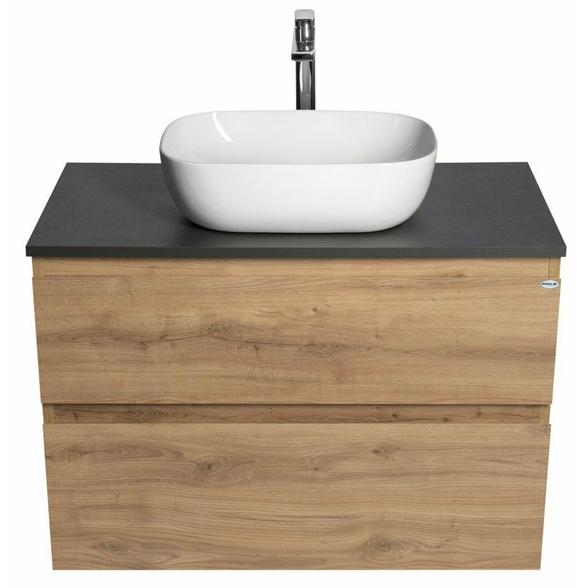 Koupelnový nábytek ALTAIR s deskou ALTAIR (HPL) v dekoru dub emporio a antracit břidlice platin lze kombinovat s umyvadly na postavení.