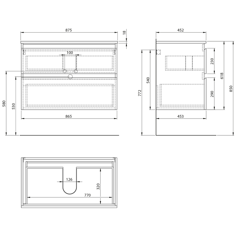 Desky pod umyvadlo jsou dodávány bez vyvrtaných otvorů pro baterii a odpad.