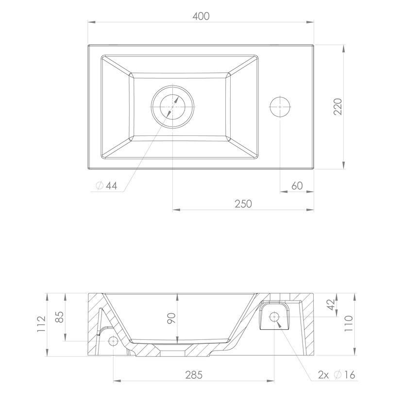 Parametry produktu AMAROK umývátko, litý mramor, 40x22cm, baterie vpravo, bílá
