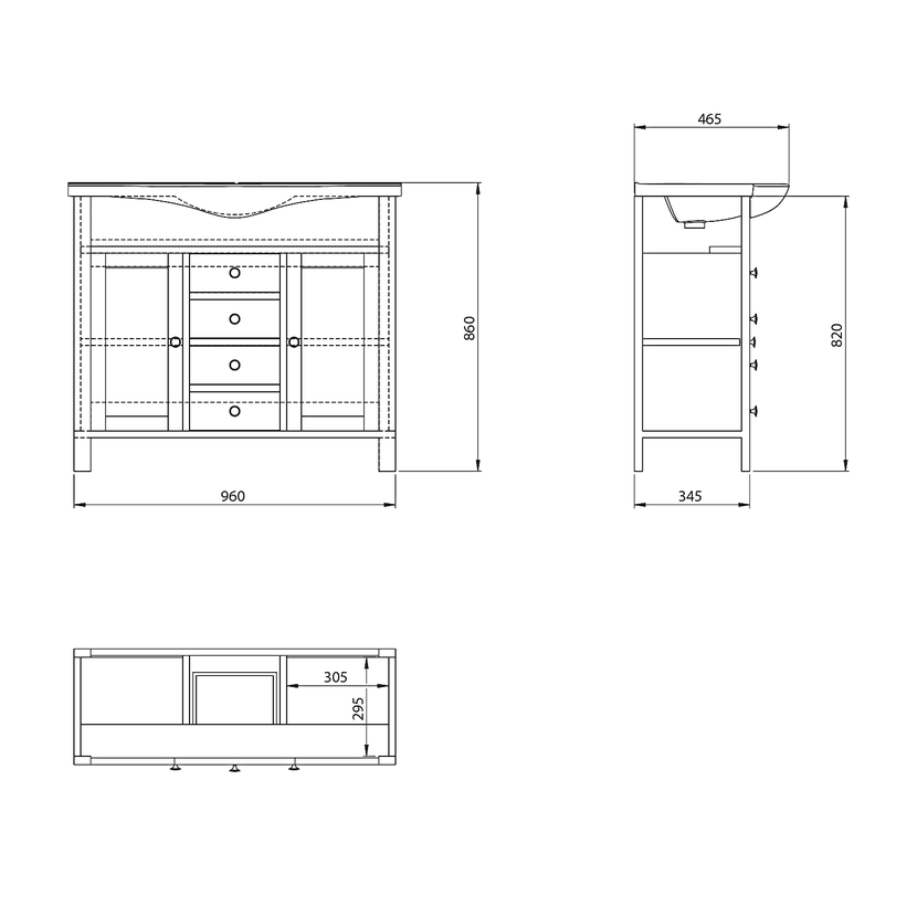 Parametry produktu  AMBRA umyvadlová skříňka 96x82x34,5cm, mořený smrk
