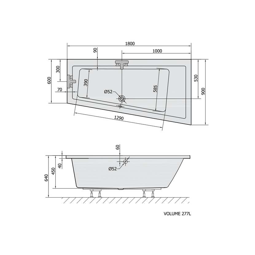 Parametry produktu ANDRA R asymetrická vana 180x90x45cm, černá mat