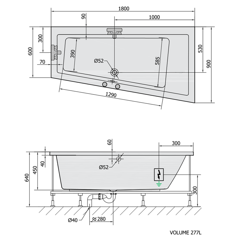 Parametry produktu ANDRA R hydromasážní vana, 180x90x45cm, Highline Hydro-Air, chrom
