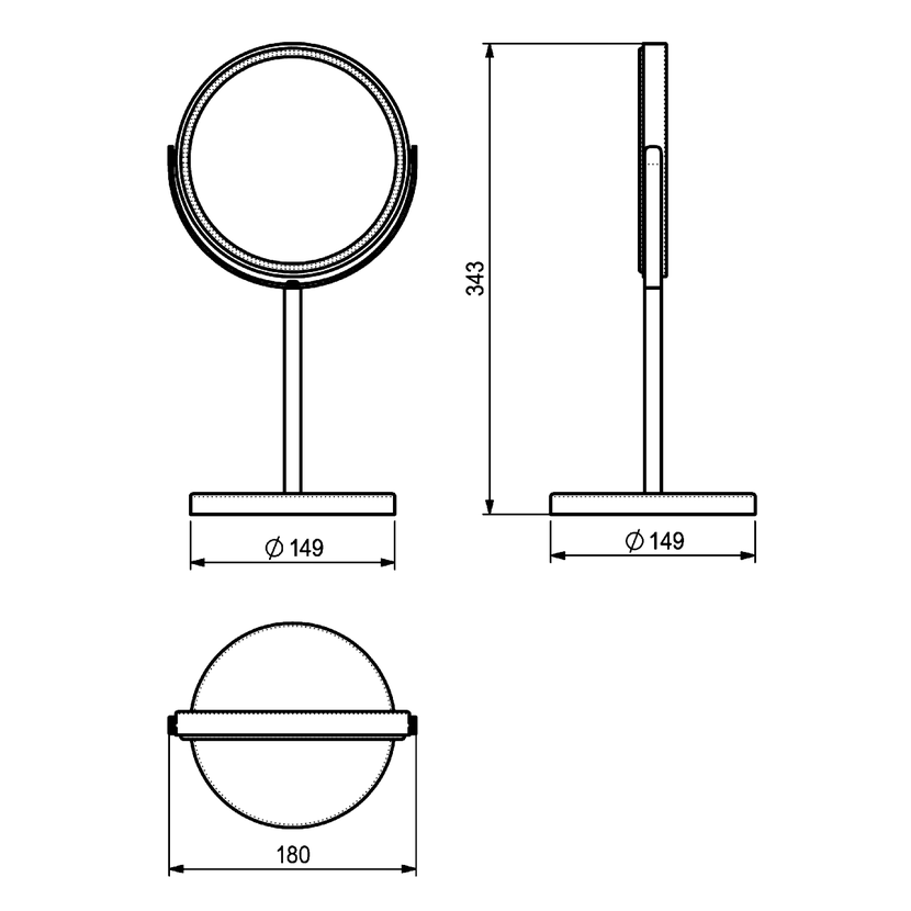 Parametry produktu  ANNA kosmetické zrcátko na postavení, O 163mm, oboustranné, černá mat