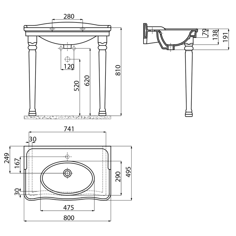 Parametry produktu ANTIK keramické umyvadlo 80x50cm, bílá