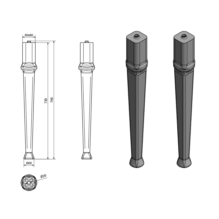 Parametry produktu ANTIK nohy k umyvadlu (2 ks), bílá