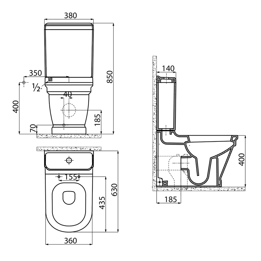 Parametry produktu ANTIK WC mísa kombi, zadní/spodní odpad, 37x63cm, bílá