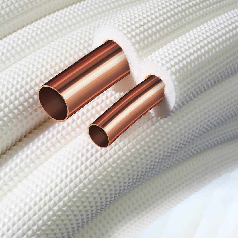 Měděné bezešvé trubky pro chladicí a klimatizační zařízení s průmyslově vyráběnou tepelnou a mechanickou izolací. Určené pro vodovodní instalace, vytápění, klimatizace, chlazení, solární systémy a průmyslové sítě.