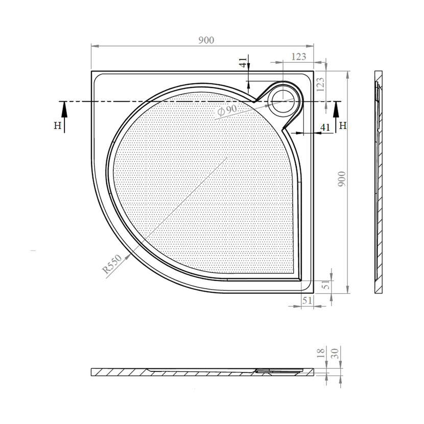 Parametry produktu  ARCA sprchová vanička z litého mramoru, čtvrtkruh 90x90cm, R550, bílá