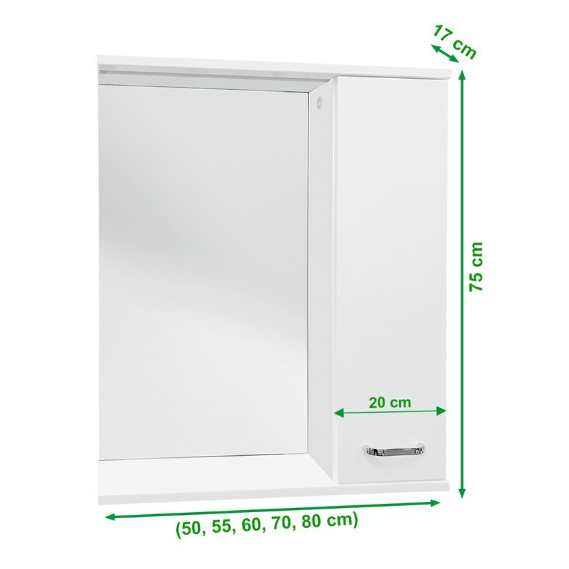 • zrcadlová skříňka v bílé barvě s povrchovou úpravou vysokého lesku