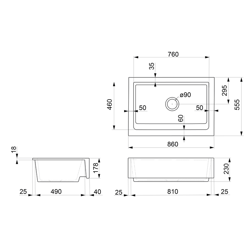Parametry produktu  ARYA keramický dřez 86x55,5cm, bílá