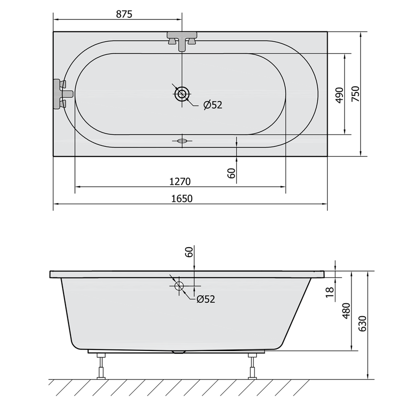 Parametry produktu ASTRA B SLIM obdélníková vana 165x75x48cm, bílá