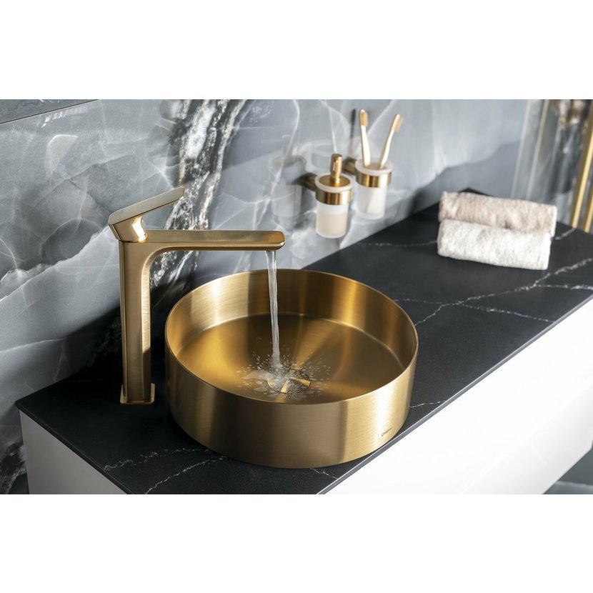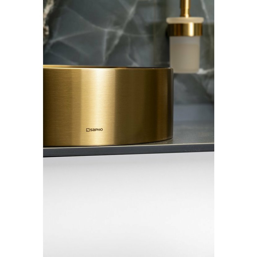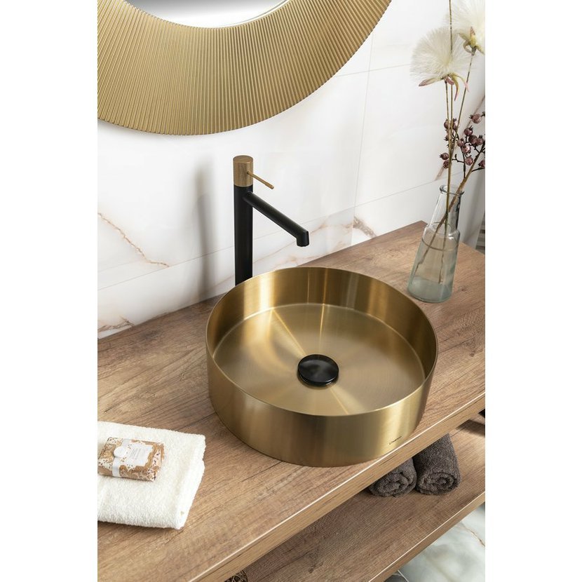 Parametry produktu  AURUM nerezové umyvadlo na desku, průměr 38cm, včetně výpusti, zlato mat