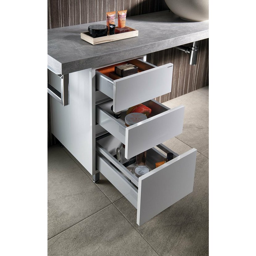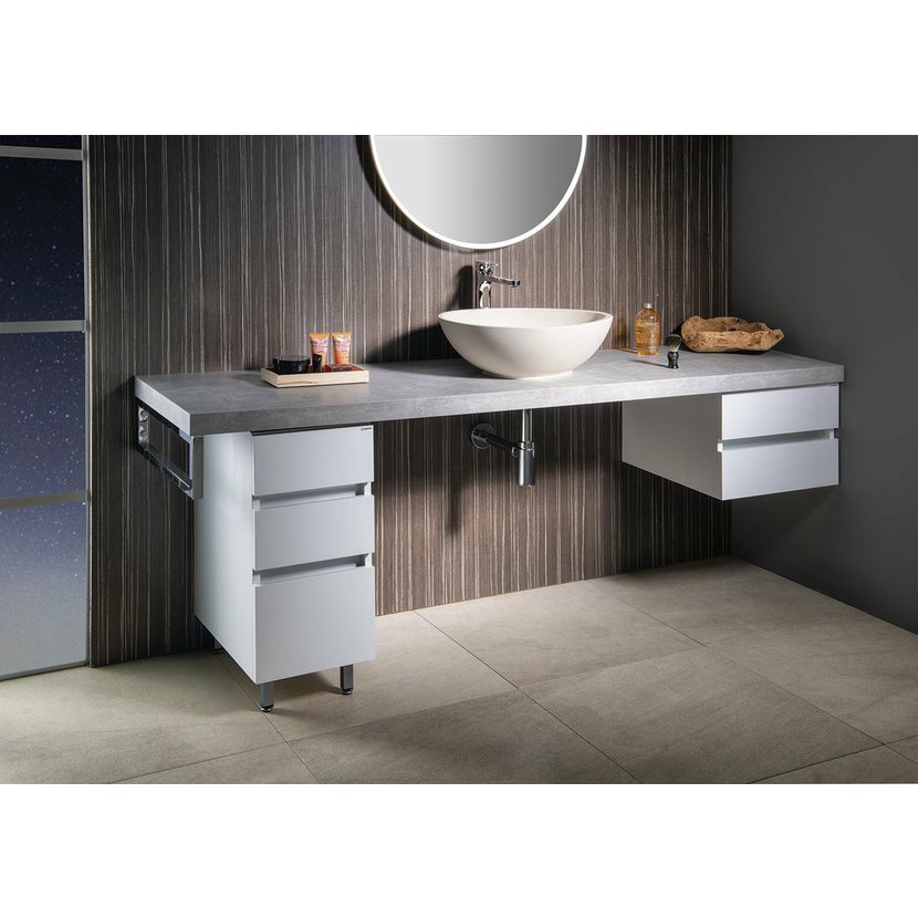 Série doplňkových skříněk k umyvadlovým deskám řady AVICE nabízí různé varianty skříněk od závěsných pod desku až po skříňky pojezdové. Vybírejte, kombinujte a dolaďte vzezření své umyvadlové sestavy k dokonalosti.