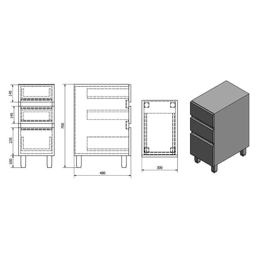 Parametry produktu AVICE 3x zásuvka 30x70,5x48cm, bílá