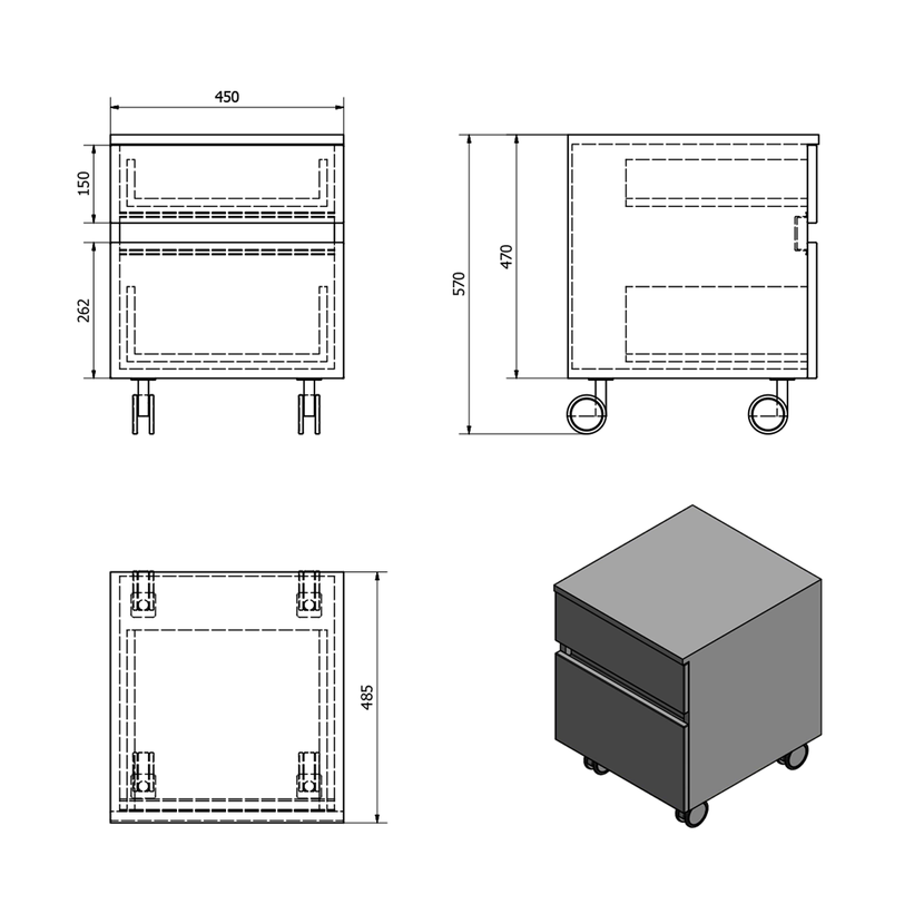 Parametry produktu AVICE skříňka na kolečkách, 2x zásuvka 45x57x48,5cm, bílá