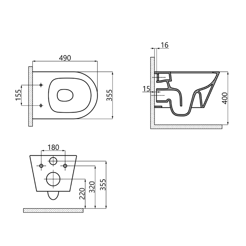 Rimless (NoRim) – toalety bez tradičního oplachového kruhu. Hladký povrch bez dutin a záhybů. Oplachová voda vytéká rozdělovačem vody pouze ze zadní části WC mísy a díky speciálnímu tvaru keramiky dokonale opláchne vnitřní prostor. Výhodou je snadná údržba a čištění WC mísy.