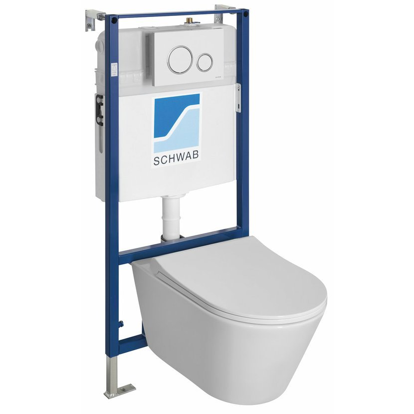 Závěsné WC AVVA Rimless s podomítkovou nádržkou a tlačítkem Schwab, bílá 100314-SET5