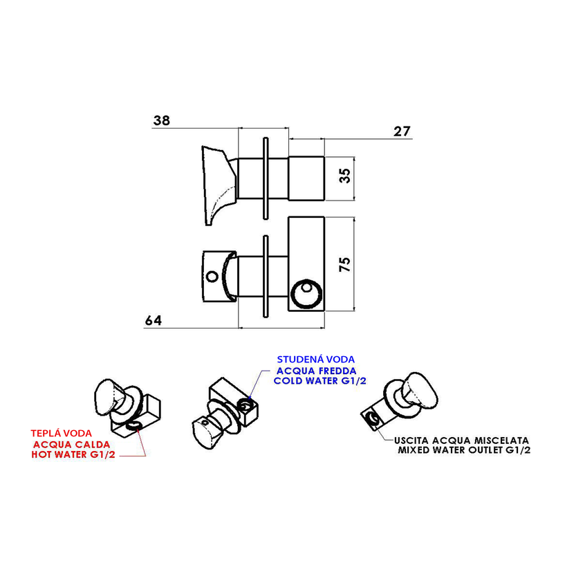 Parametry produktu  AXAMITE podomítková bidetová baterie se Stop sprškou, chrom