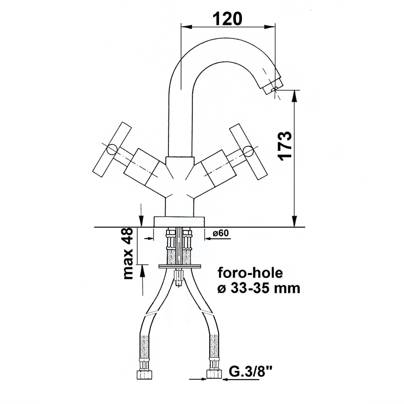Parametry produktu AXIA stojánková umyvadlová baterie, chrom