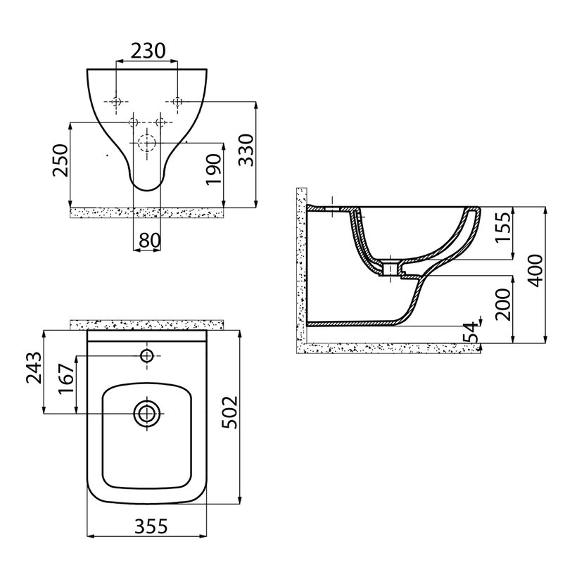 Parametry produktu  BENE bidet závěsný, 35,5x50 cm, bílá