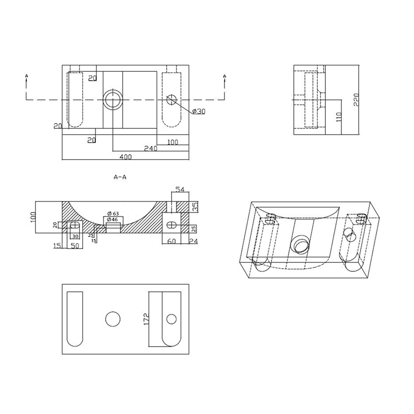 Parametry produktu  BLOK kamenné umývátko 40x22cm, baterie vpravo, antracit