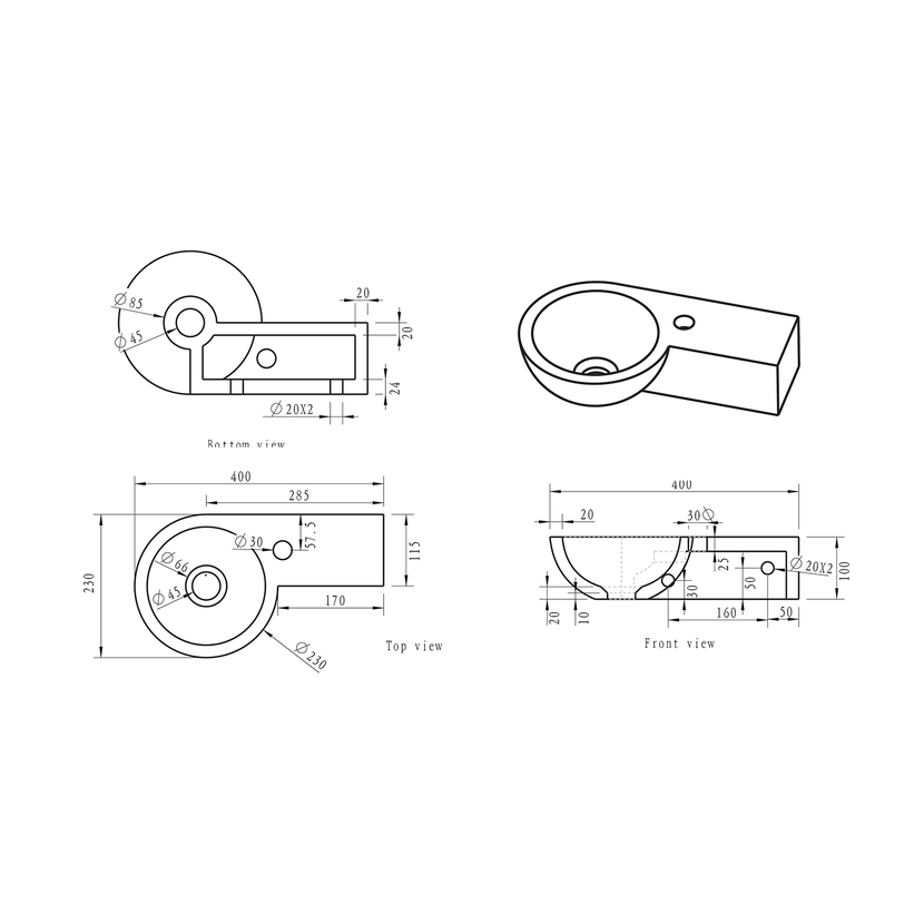 Parametry produktu  BLOK kamenné umývátko 40x23cm, antracit