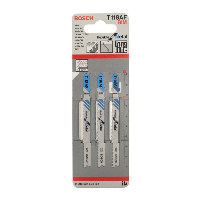Je vybaven velmi jemně progresivní roztečí zubů listu (1,1-1,5 mm) a řeže velmi tenké kovové plechy s tloušťkou 1-3 mm. Pro použití s přímočarými pilami a systémy úchytu pomocí upnutí ve tvaru T.