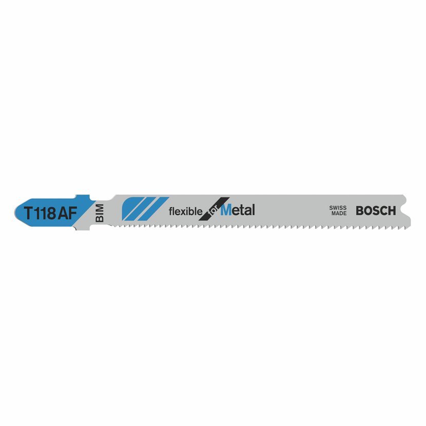 Pilový list se střídavým ozubením T 118 AF Flexible for Metal je odolný vůči zlomení při rovných řezech do kovu. Jeho frézované zvlněné zuby jsou navržené pro řezání kovového plechu.
