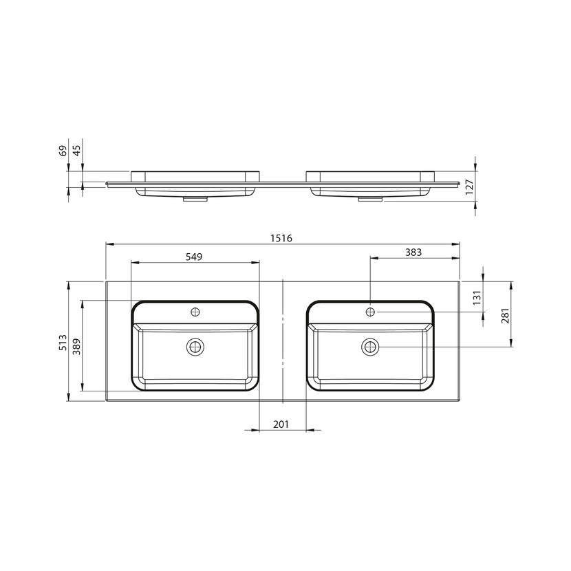 Parametry produktu  BRAHEA dvojumyvadlo 151,6x51,5cm (75+75), rockstone, bílá mat
