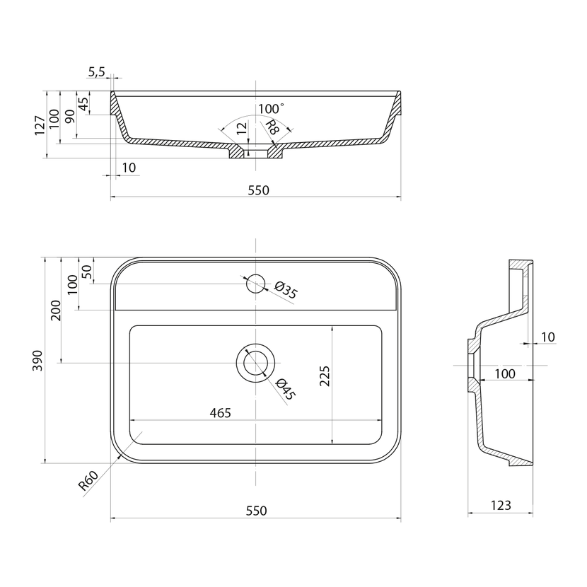 Parametry produktu BRAHEA umyvadlo zápustné, Rockstone, 55x39 cm, bílá mat