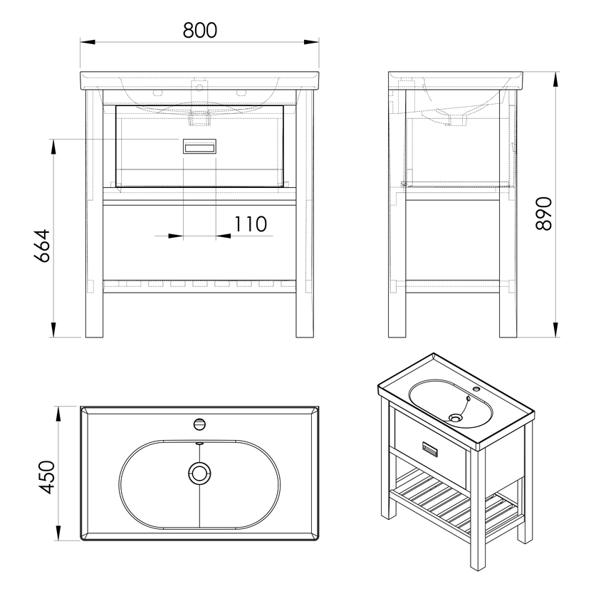 Parametry produktu BRAND umyvadlová skříňka 76x83x43cm, mořený smrk