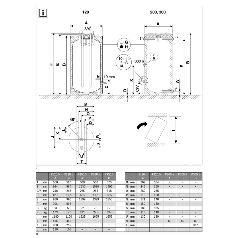 Objem vody: 120l Pohotovostní ztráta energie: 46,8 W Čistá hmotnost: 41,2 kg Výška: 996 mm Jmenovitý objem: 120 l Spotřeba energie v pohotovostním režimu: 1,6kW h/d Maximální provozní tlak TV: 3bar Výška včetně obalu: 1173 mm Délka včetně obalu: 770 mm Maximální provozní tlak vytápění: 0 bar Objem zásobníku: 122,9 l Šířka včetně obalu: 752 mm Max. teplota, teplá voda: 90°C