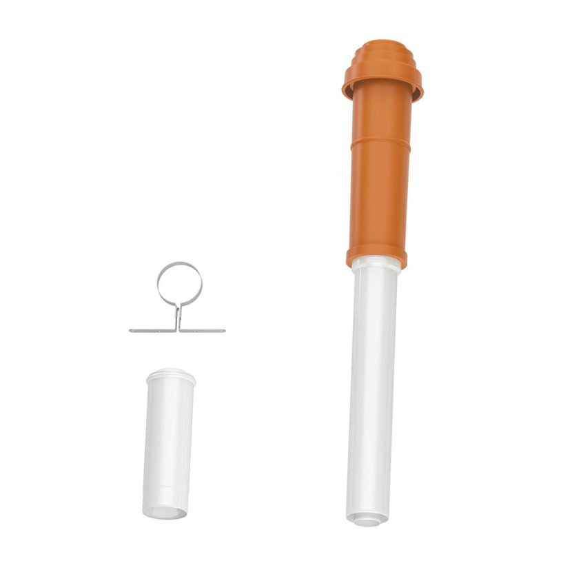 DO - základní sada kouřovodu, koncentrické provedení odvodu spalin a přívodu spalovacího vzduchu přes střechu z plastu PP / pozink. ocel. plechu, průměr 80/125 mm se skládá :