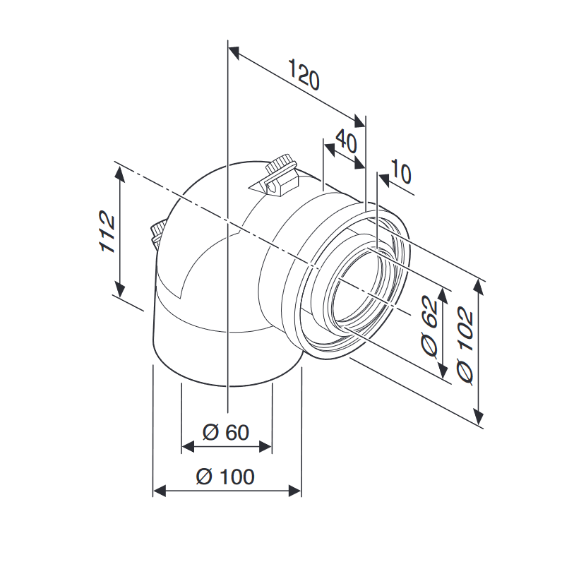BUDERUS koncentrické revizní koleno DN 60/100, 87° plast/kov 7738112637