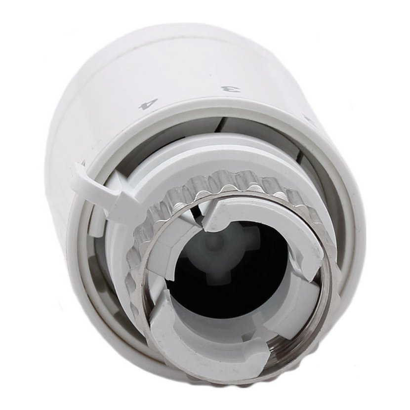 Termostatická hlavice s vestavěným kapalinovým čidlem v novém moderním designu Bílá barva RAL9016 K dispozici je hlavice se svěrným spojem nebo se závitovým připojením M30x1,5 Možnost nastavení nulové polohy Rozsah teplot 6 - 28 °C.