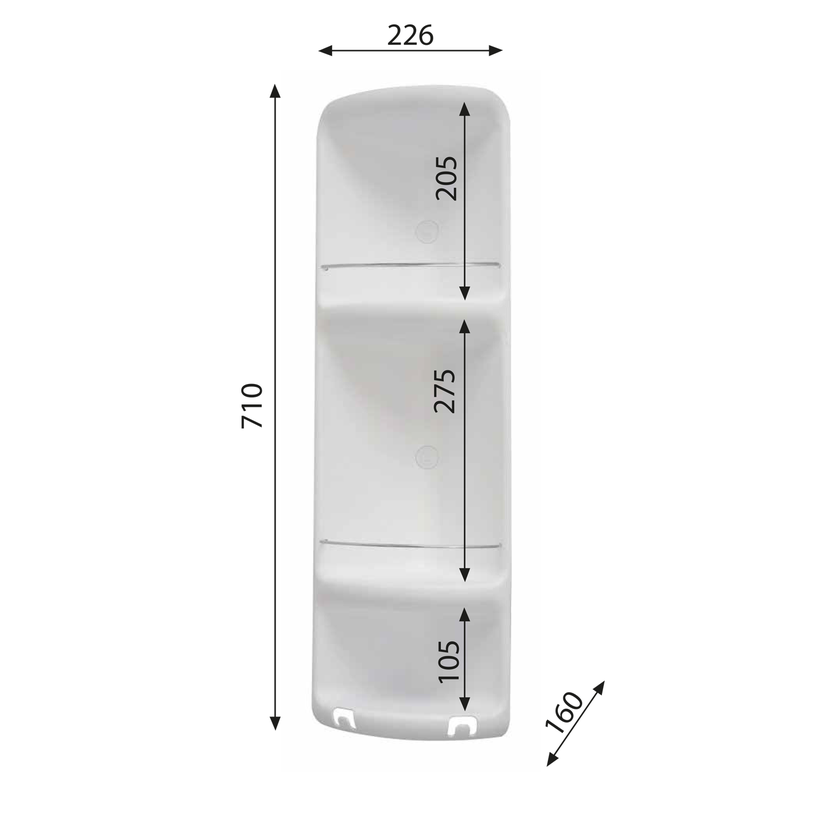 Parametry produktu CAESAR třípatrová rohová polička do sprchy 226x710x160 mm, ABS plast, bílá