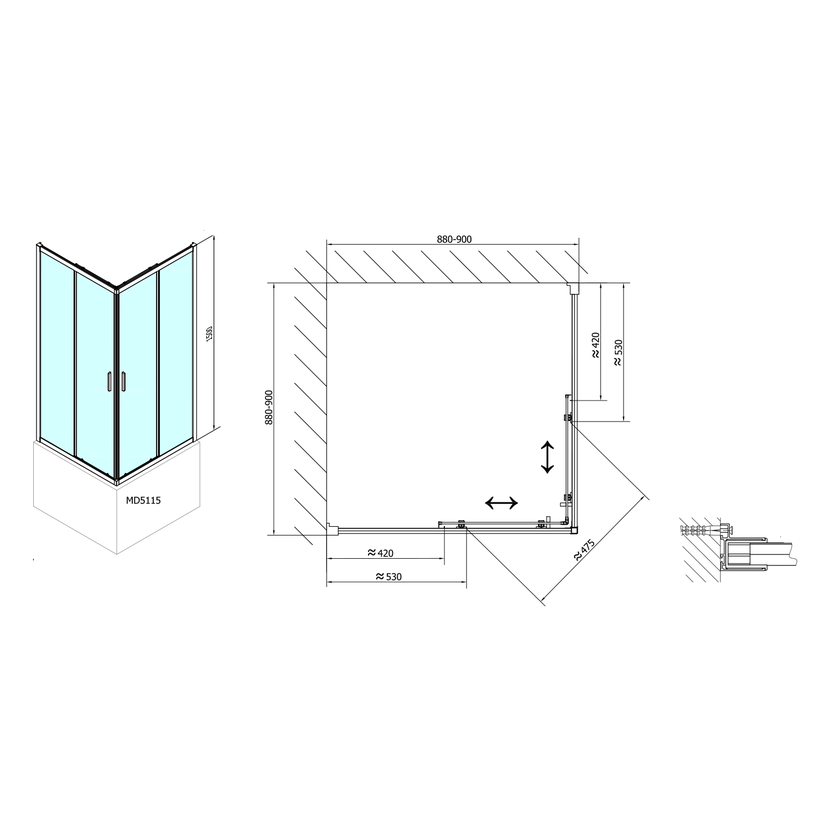 Parametry produktu  CARMEN čtvercová sprchová zástěna 900x900x1500mm, čiré sklo