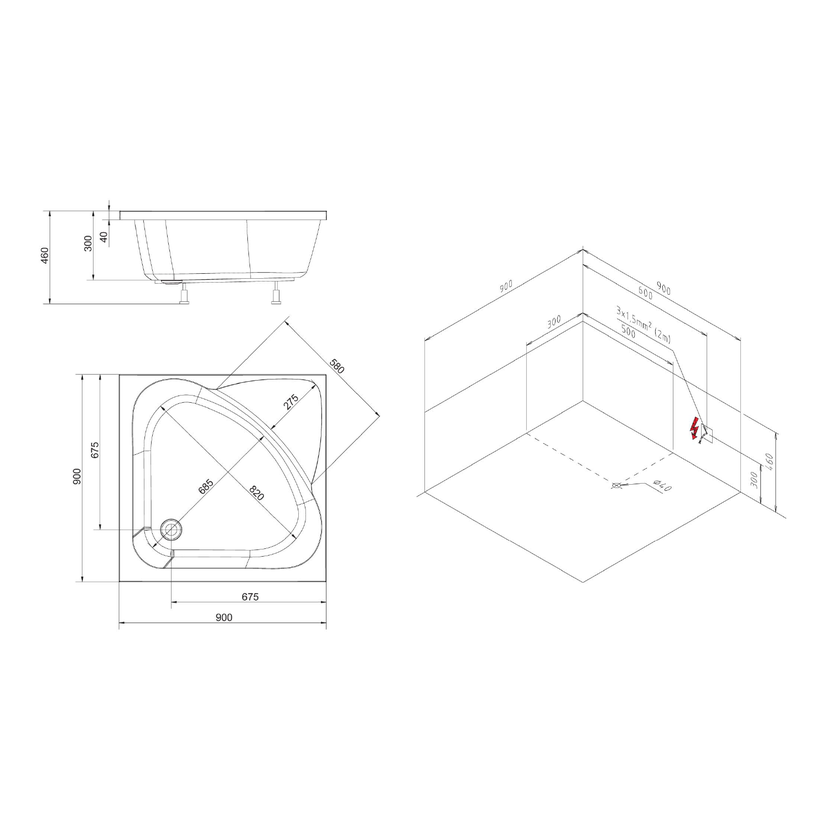 Parametry produktu  CARMEN hluboká sprchová vanička s konstrukcí, čtverec 90x90x30cm, bílá