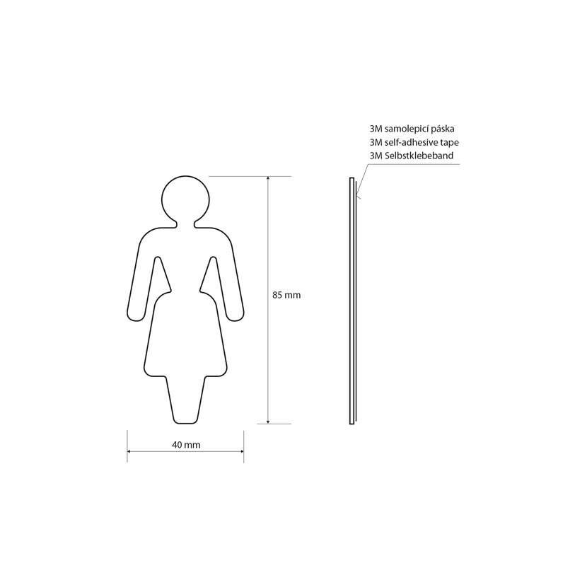 Parametry produktu  Cedule WC dámy, 80x35x2mm, nerez mat