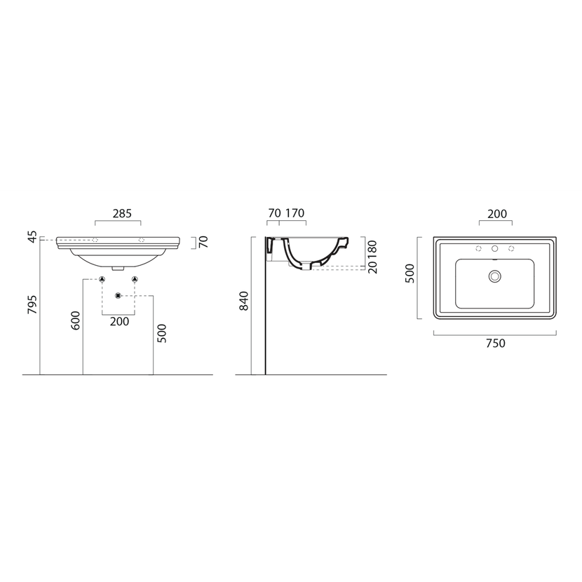 Parametry produktu CLASSIC keramické umyvadlo 75x50cm, 3 otvory, bílá ExtraGlaze