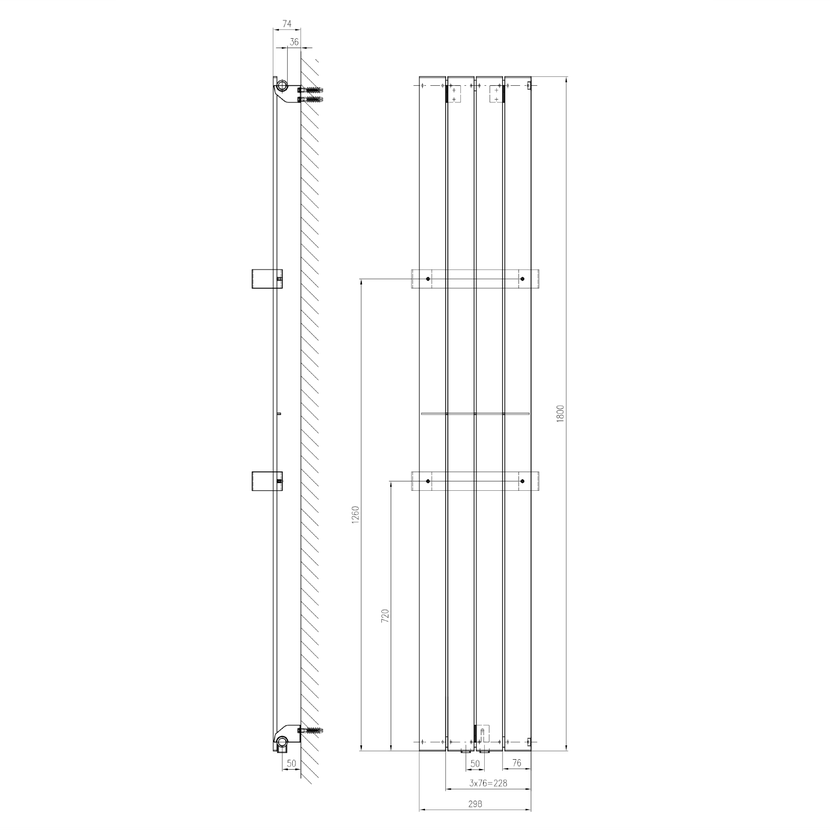 Parametry produktu COLONNA otopné těleso 298x1800mm, metalická stříbrná