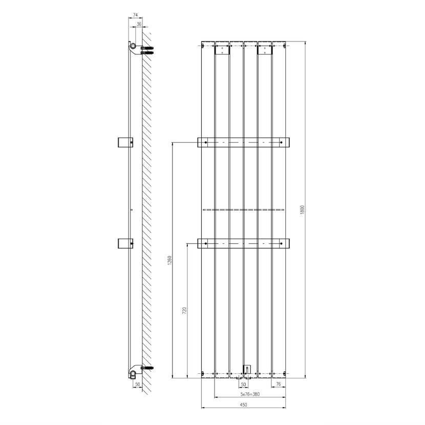 Parametry produktu COLONNA otopné těleso 450x1800mm, bílá
