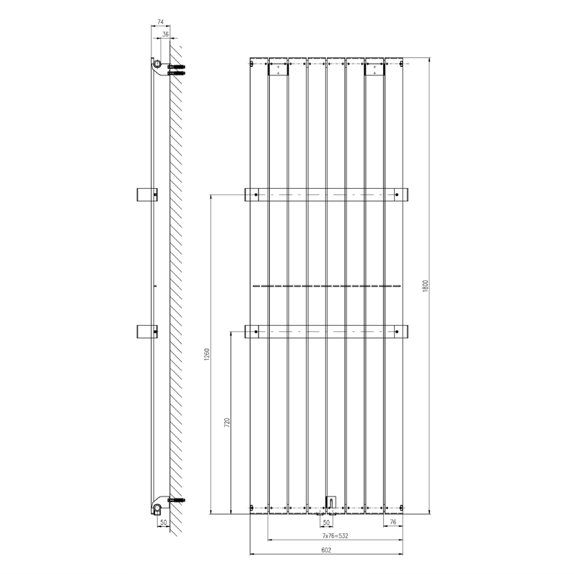 Parametry produktu COLONNA otopné těleso 602x1800mm, metalická stříbrná