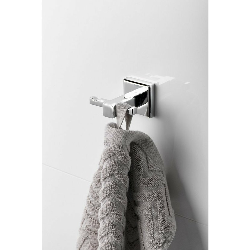 Malý hranatý úchyt na stěnu a štíhlé hranaté profily charakterizují sérii COLORADO. Doplňky lze na stěnu přivrtat nebo nalepit.