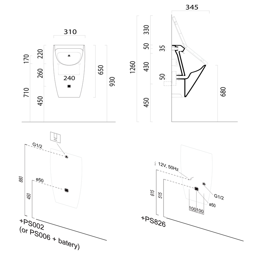 Parametry produktu COMMUNITY urinál se zakrytým přívodem vody s otvory pro víko 31x65cm, černá mat