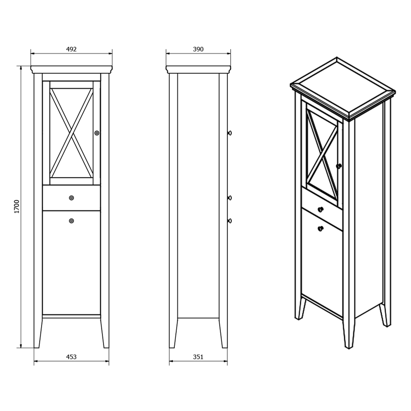 Parametry produktu CROSS skříňka vysoká s prádelním košem 49x170x39cm, levá, starobílá