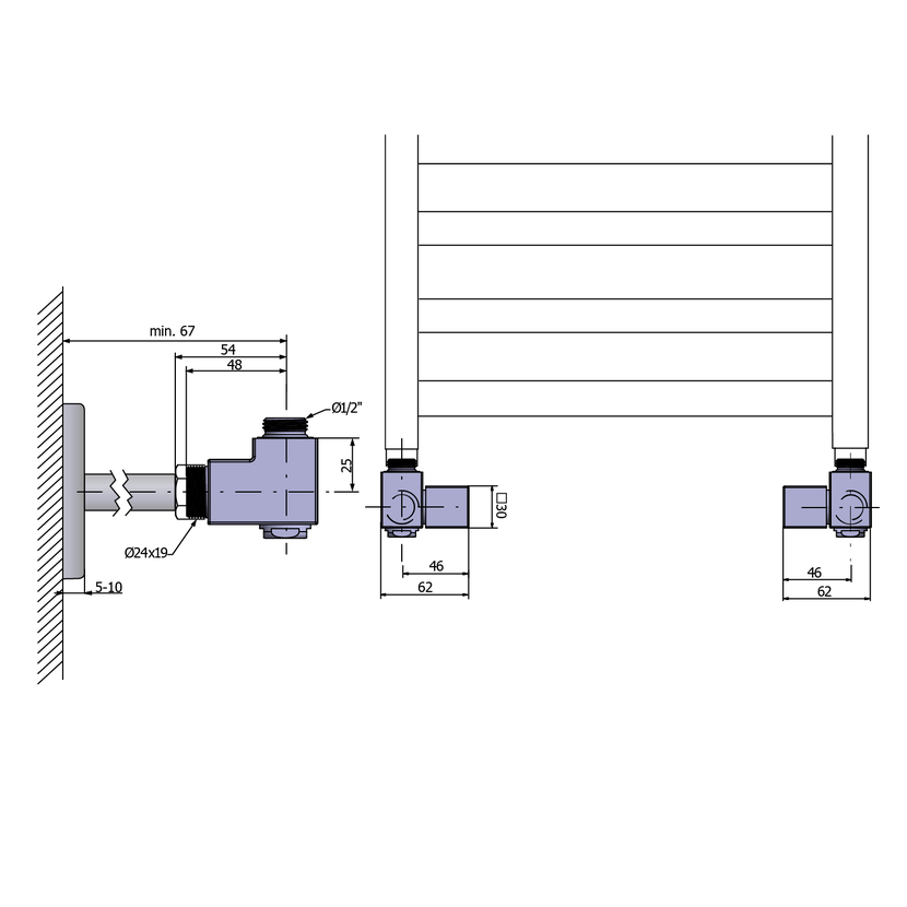 Parametry produktu  CUBE COMBI připojovací sada ventilů ruční rohová, pravá, chrom