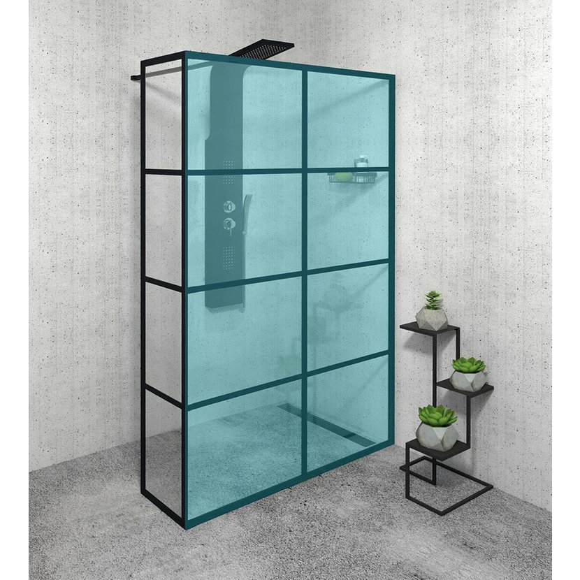 Z vnější strany je sklo orámováno černým matným rámem a opticky rozděleno vodorovnými profily na 4 okna. Zástěny o šířkách 1200 a 1400 mm jsou navíc opatřeny svislým profilem, takže zástěna je rozdělena na 8 tabulek. Z vnitřní strany je zástěna dokonale hladká a pro snadnou údržbu ošetřena povrchovou úpravou Coated Glass. Všechny zástěny lze navíc doplnit o pevný přídavný panel.