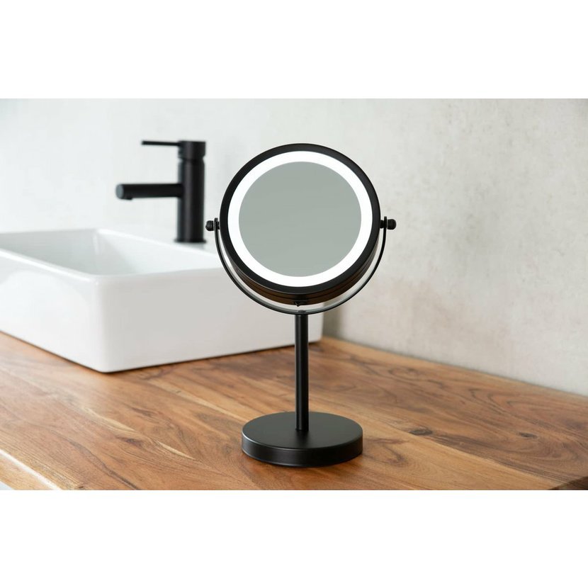 DAISY kosmetické zrcátko na postavení LED, O 150 mm, oboustranné, černá