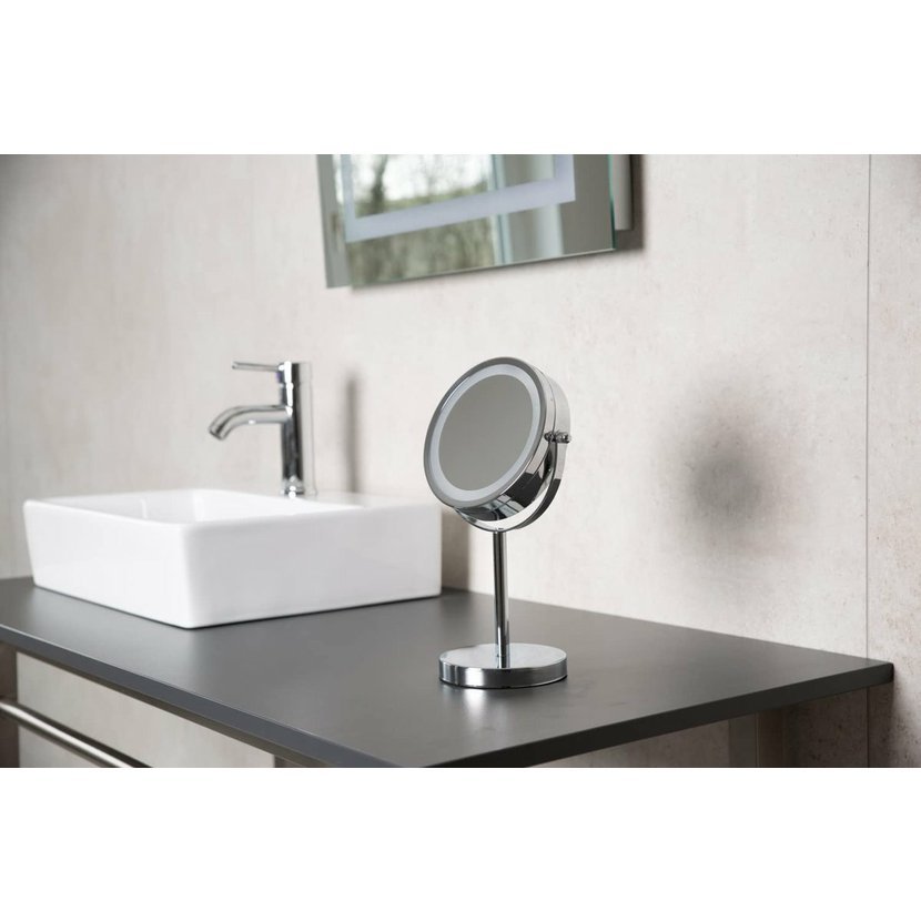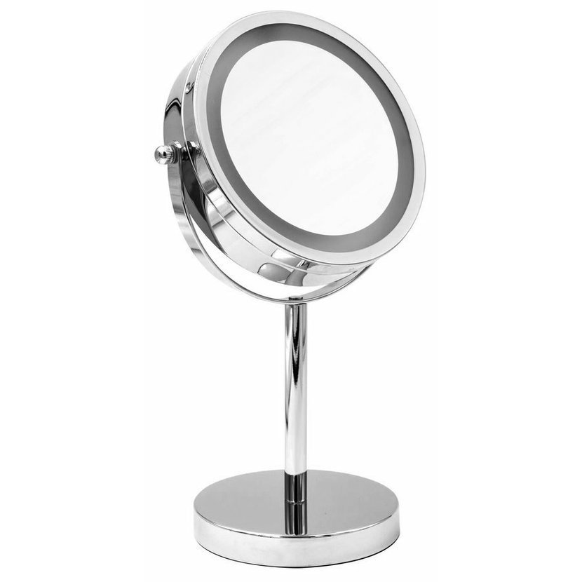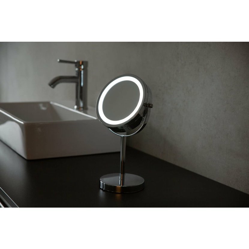 DAISY kosmetické zrcátko na postavení LED, O 150mm, oboustranné, chrom